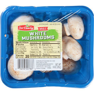 Our Family White Mushrooms Whole or Sliced 8 oz.